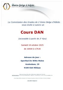 Union Belge d’Aikido (U.Be.A) Chères amies, chers amis, La saison 2024-2025 se termine, la plupart des dojos ferment leurs portes pour l’été. Nous espérons que vous avez pu pratiquer tout…
