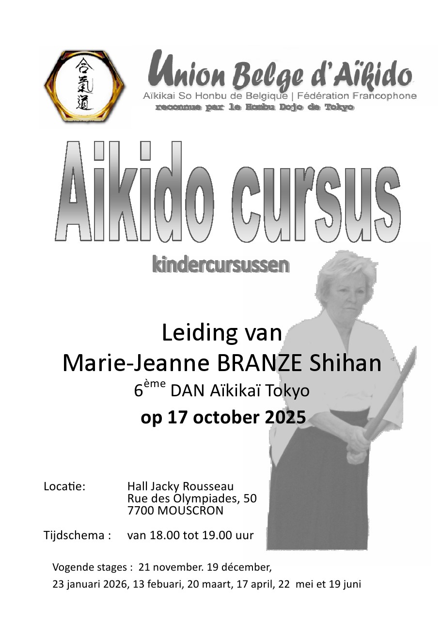 Cursus Moeskroen “Kinderen” Kindercursussen leiding van Marie-Jeanne BRANZE Shihan + Aan Google Kalender toevoegen + iCal / Outlook export Datum 17 10 2025 Tijd 18 h 00 min - 19 h 00 min Plus d\'infos Affiche Labels UBEA Catégories UBEA Affiche Deel dit evenement