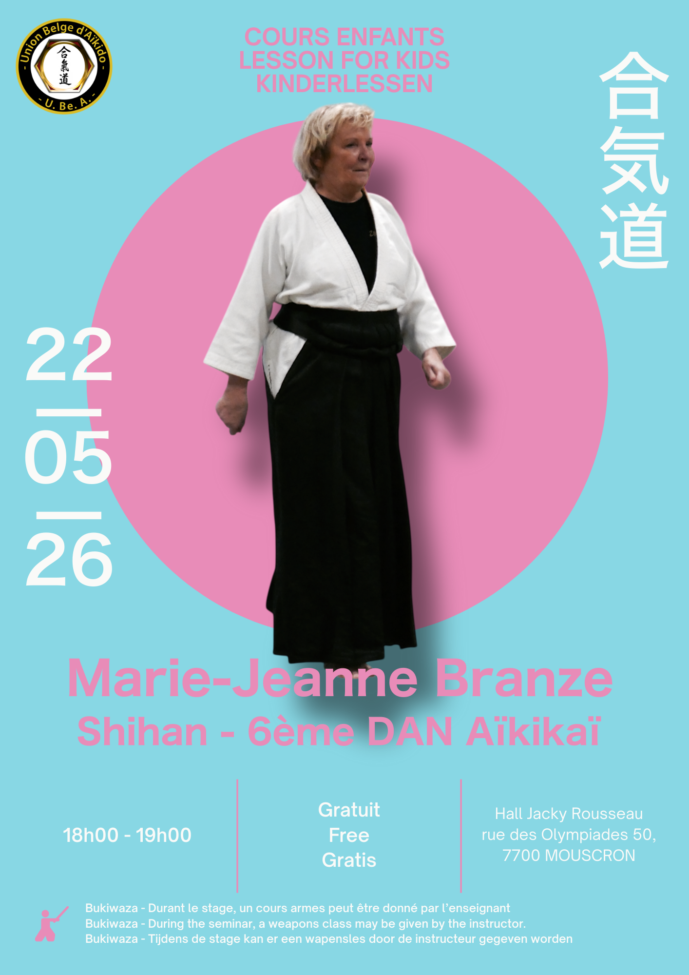 Cursus Moeskroen “Kinderen” Kindercursus onder leiding van Marie-Jeanne BRANZE Shihan + Aan Google Kalender toevoegen + iCal / Outlook export Datum 22 05 2026 Tijd 18 h 00 min - 19 h 00 min Plus d\'infos Affiche Labels Clubs Lieu Hall Jacky Rousseau Catégories Clubs Organisateur Dewaele Camille Affiche Deel dit evenement
